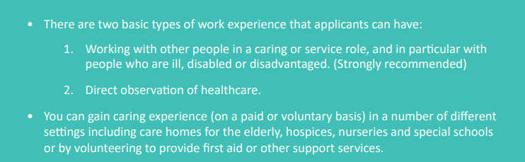 This work experience will be particularly valuable for students interested in studying medicine, to put on their UCAS applications, as outlined here: